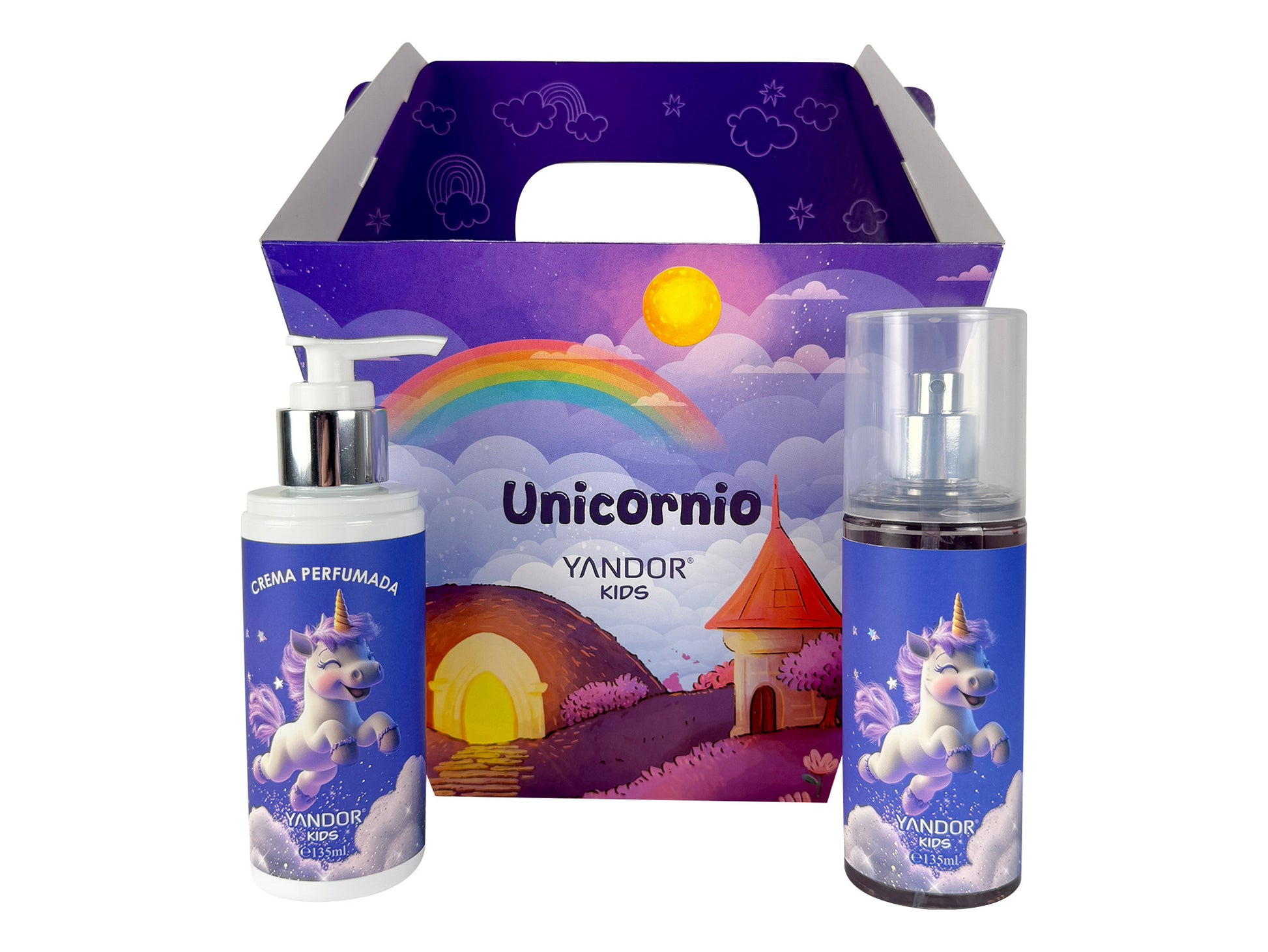 Sumérgete en un mundo de fantasía donde los sueños huelen a dulzura y los arcoíris perfuman el aire. El set Unicornio de Yandor Kids combina una fragancia tierna, alegre y mágica con una crema perfumada que deja la piel suave como una nube.